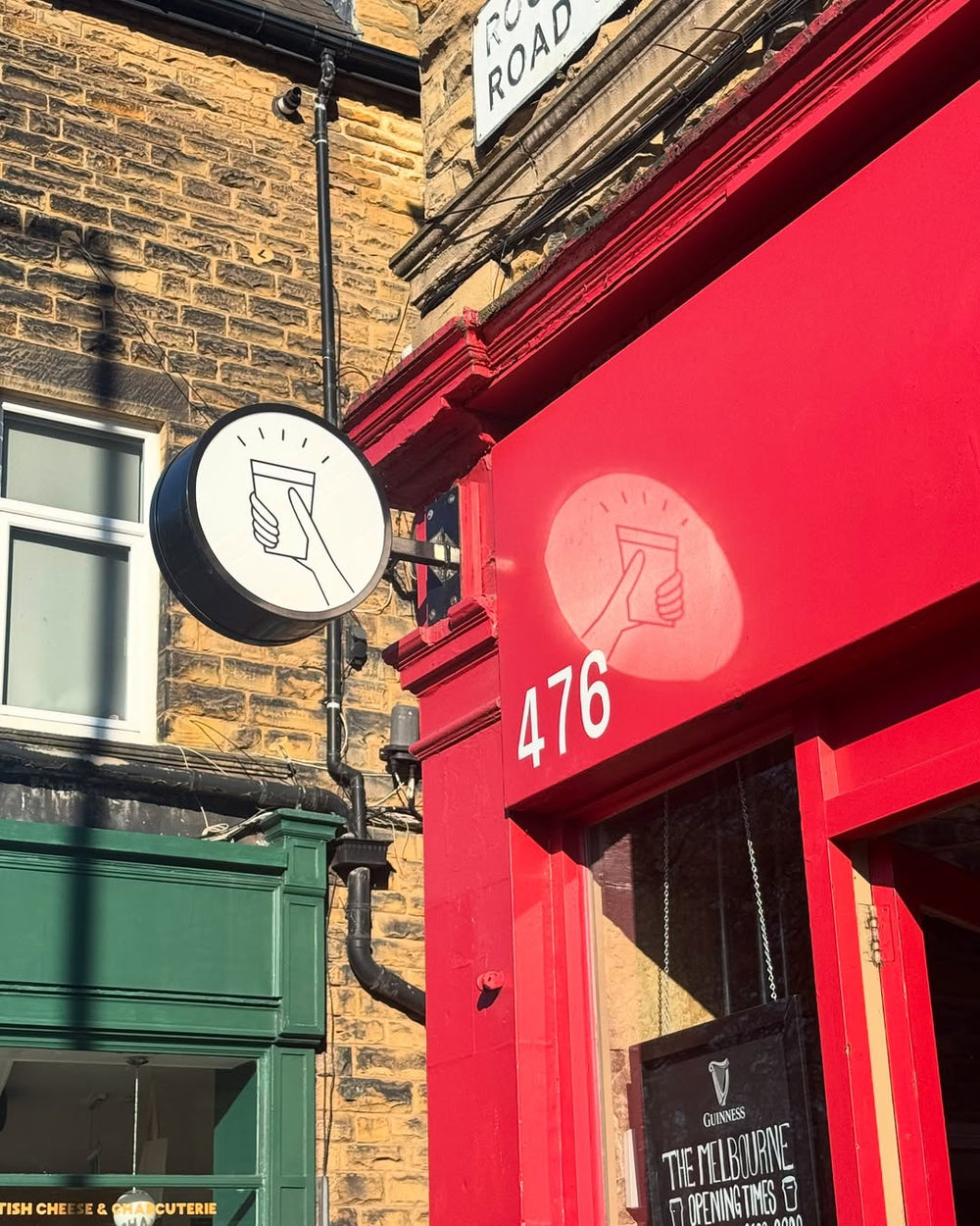 These circular projecting lightboxes are built double-sided to give full visibility down the street.